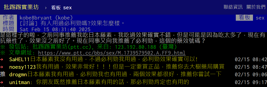 15 2 月 必利勁 必利勁PTT討論總整理:真實評價、效果與購買指南 2025 年 2 月 20 日 By 大樹藥局 0 comments 必利勁PTT熱議話題解析 在PTT上,「必利勁」作為一款治療早洩(PE)的藥物,一直是男性網友討論的焦點。許多使用者在PTT上分享自身經驗,包括使用效果、副作用、購買管道與真假辨別等。本篇文章將為您整理PTT上的熱門話題,幫助您更全面了解必利勁。 必利勁的作用機制與... 繼續閱讀