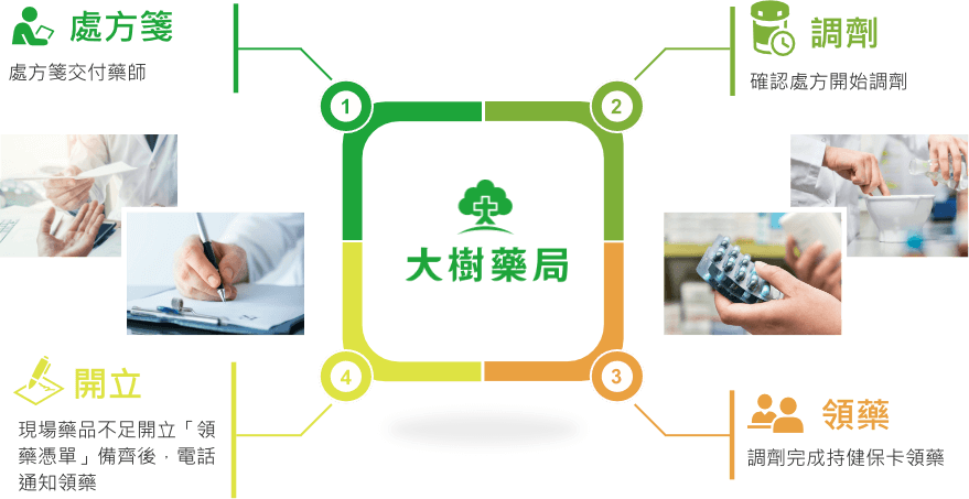 大樹藥局提供與醫院相同的藥物,讓您不用再花時間跑到大醫院排隊領藥。