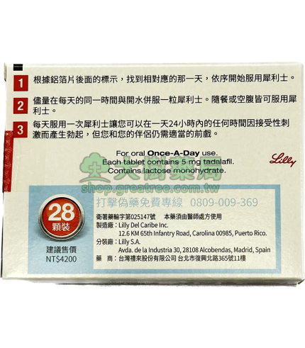 犀利士膜衣錠 Cialis (28錠/盒) Tadalafil 5mg (Once-A-Day use)丨大樹藥局官方直營