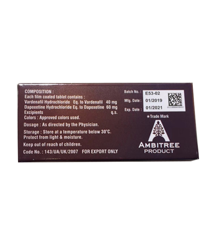 【藥品成分】:伐地那非(艾力達) 40mg +達泊西汀(超級艾力達)60mg