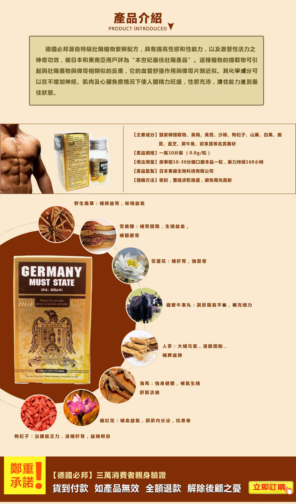 補腎强身、護正固本、用于神衰倦怠、頭暈心悸、眼花耳鳴、陽萎少精、生精填髓强筋壯骨、前列腺炎陽痿、早洩、陰莖短小和各種原因引起的性神經系統功能!