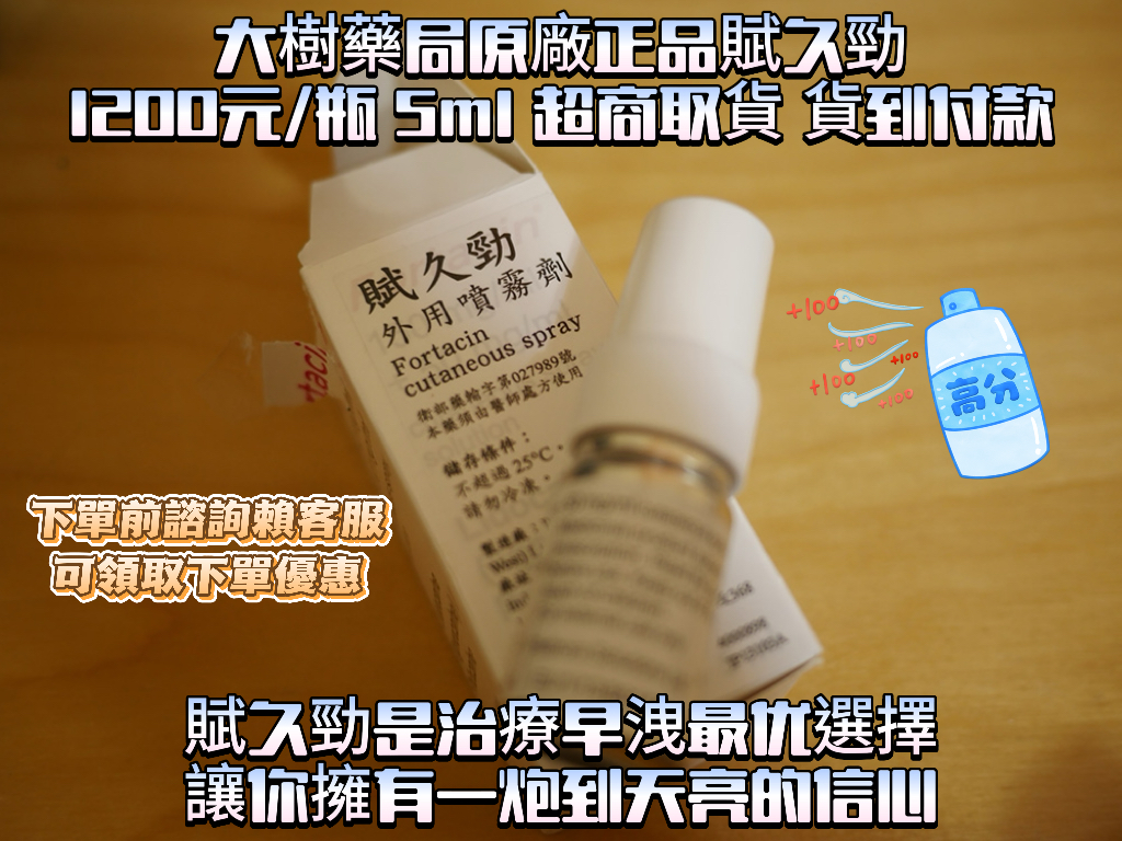 與其冒險買假貨傷身,不如聰明投資正品賦久勁!現在就透過大樹藥局訂購,享受「效果看得見」的性福升級體驗。