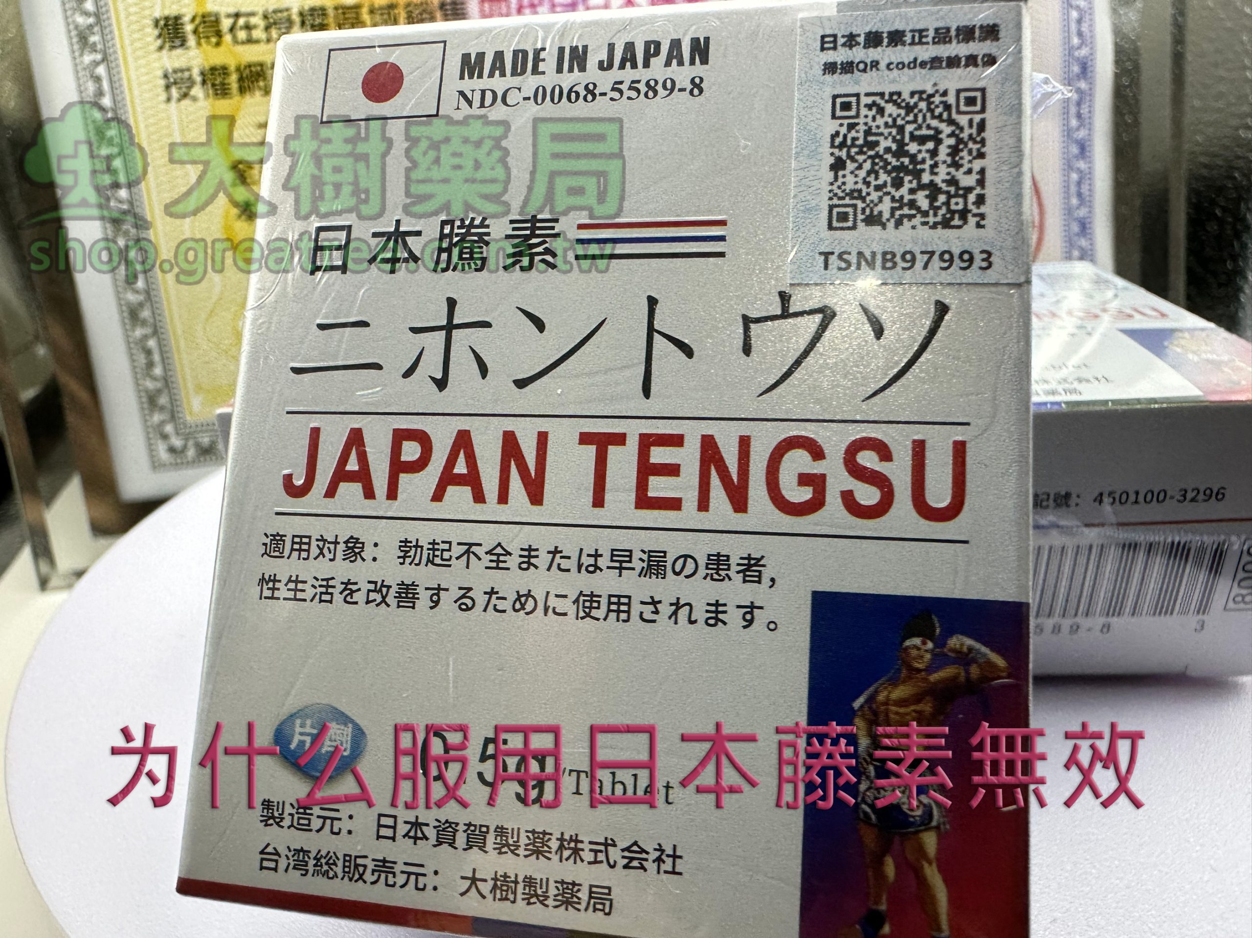 日本藤素(JAPAN TENGSU)是日本京都資賀製藥出品的一款保健品,能夠治療性功能障礙,延長性愛時間,長期用藥可達到增大陰莖的效果!成分百分百的動植物萃取,它的成分為:赤根草、雄鹿鞭、澱粉等。日本藤素以其無副作用的特地迅速成為壯陽藥市場中的寵兒!但也有部分用戶反映“服用日本藤素無效,反映日本藤素沒用這一問題”,今日由大樹藥局(gredttref.com.tw)為大家詳細解答!